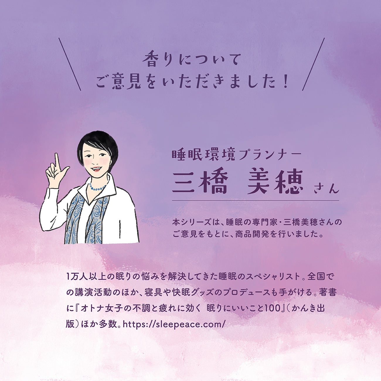 天然精油のやさしい香りがふわりと広がる、おやすみ前のピローミスト。