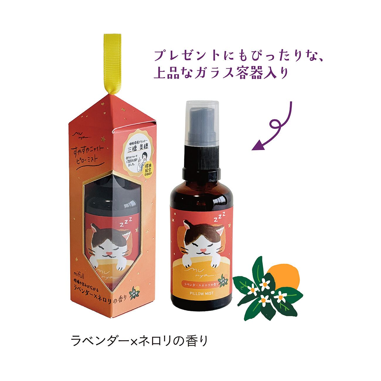 munya すやすやニャイトピローミスト 精油 ラベンダー×ネロリ|おやすみ ルームスプレー