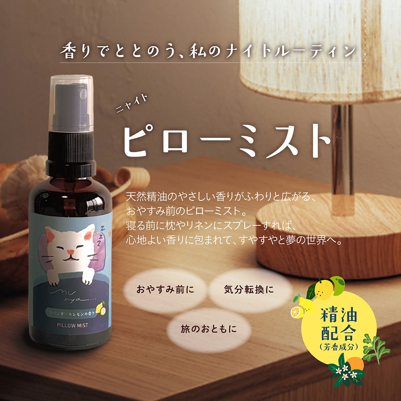おやすみ前のひとときを心地よくととのえる、ピローミストとハンドクリームの癒しセット。精油の香りに包まれながら、やさしく手肌をうるおすシアバター・CICA配合のハンドクリームと、枕や空間をふんわり香らせるピローミストを組み合わせました。