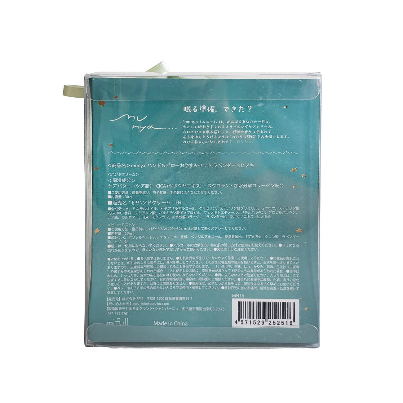munya ハンド&ピローおやすみセット ラベンダー×ヒノキ|ギフト 精油の香り ハンドクリーム ピローミスト