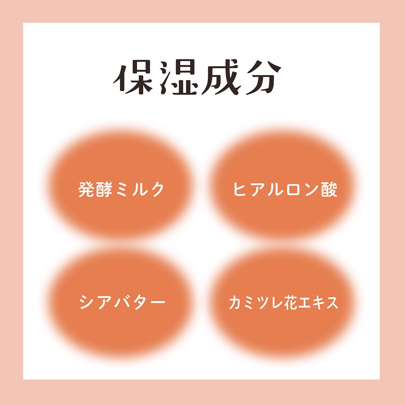 塩化Na、酸化チタン、ポリアクリル酸Na、乳酸桿菌/乳発酵液(牛乳)、シア脂、ヒアルロン酸Na、カミツレ花エキス、ポリアクリル酸、ベントナイト、ステアリン酸PEG-75、トコフェロール、エタノール、水、BG、PG、シリカ、香料、黄5