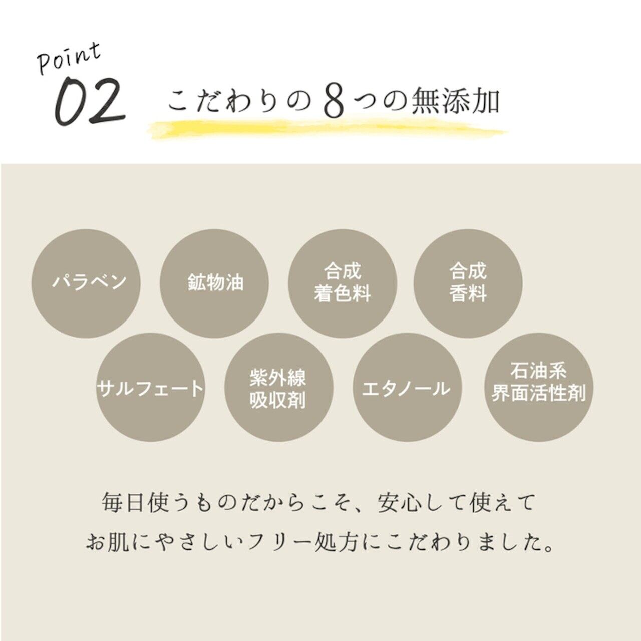 また、それぞれのトラブルの原因になりやすい乾燥に対しては、特に保湿成分を多く配合し、 オーガニック成分の力で土台をつくりながらも、機能性が落ちないよう開発しています。