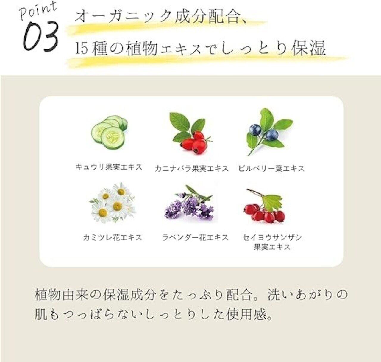 また、それぞれのトラブルの原因になりやすい乾燥に対しては、特に保湿成分を多く配合し、 オーガニック成分の力で土台をつくりながらも、機能性が落ちないよう開発しています。